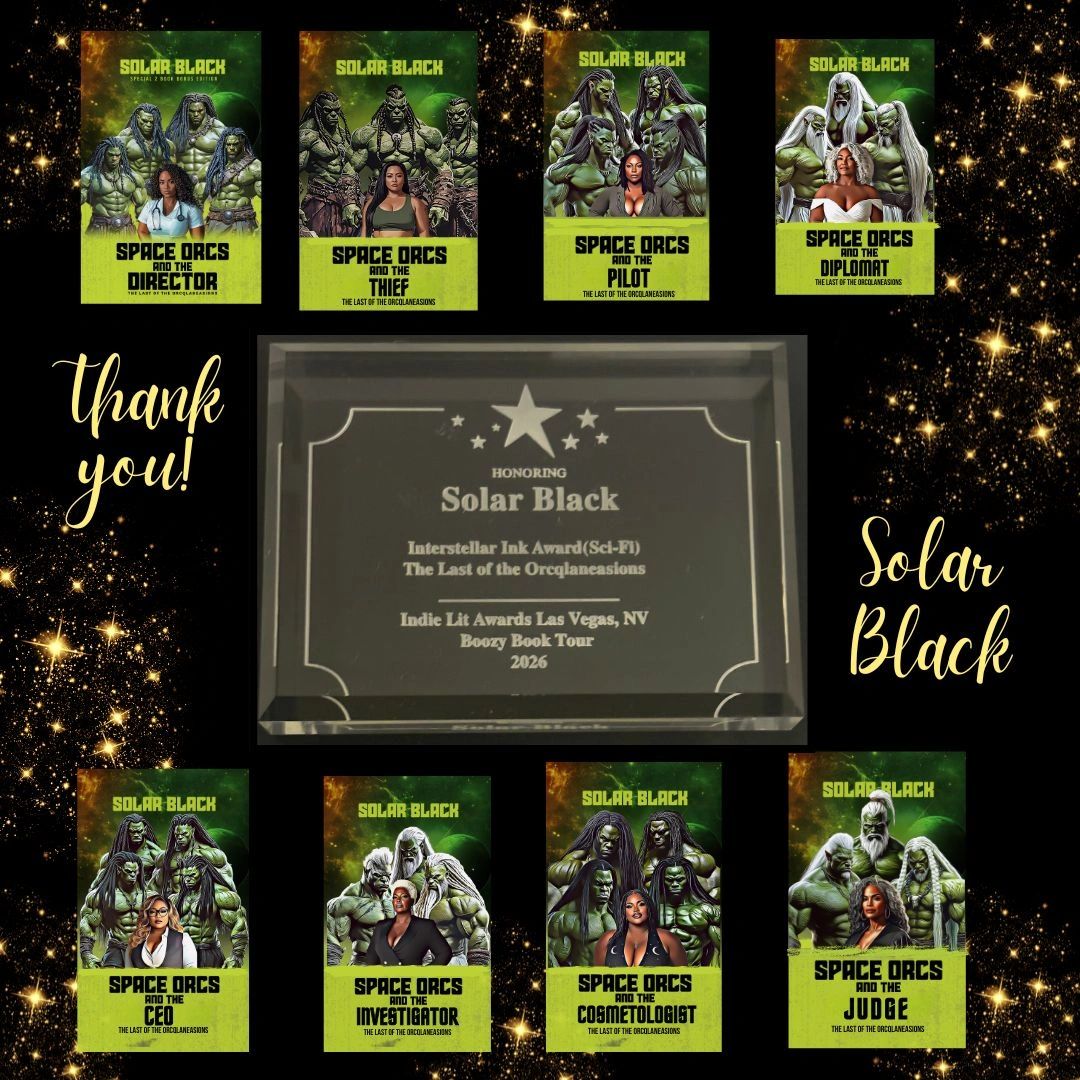 I’m Solar Black, author of The Last of the Orcqlaneasions and The Snakemen of Nyokaa series. I write spicy science fiction romance about Black women who rise after loss and find love, purpose, and family among the stars. My stories are about resilience, redemption, and the power of a second chance.